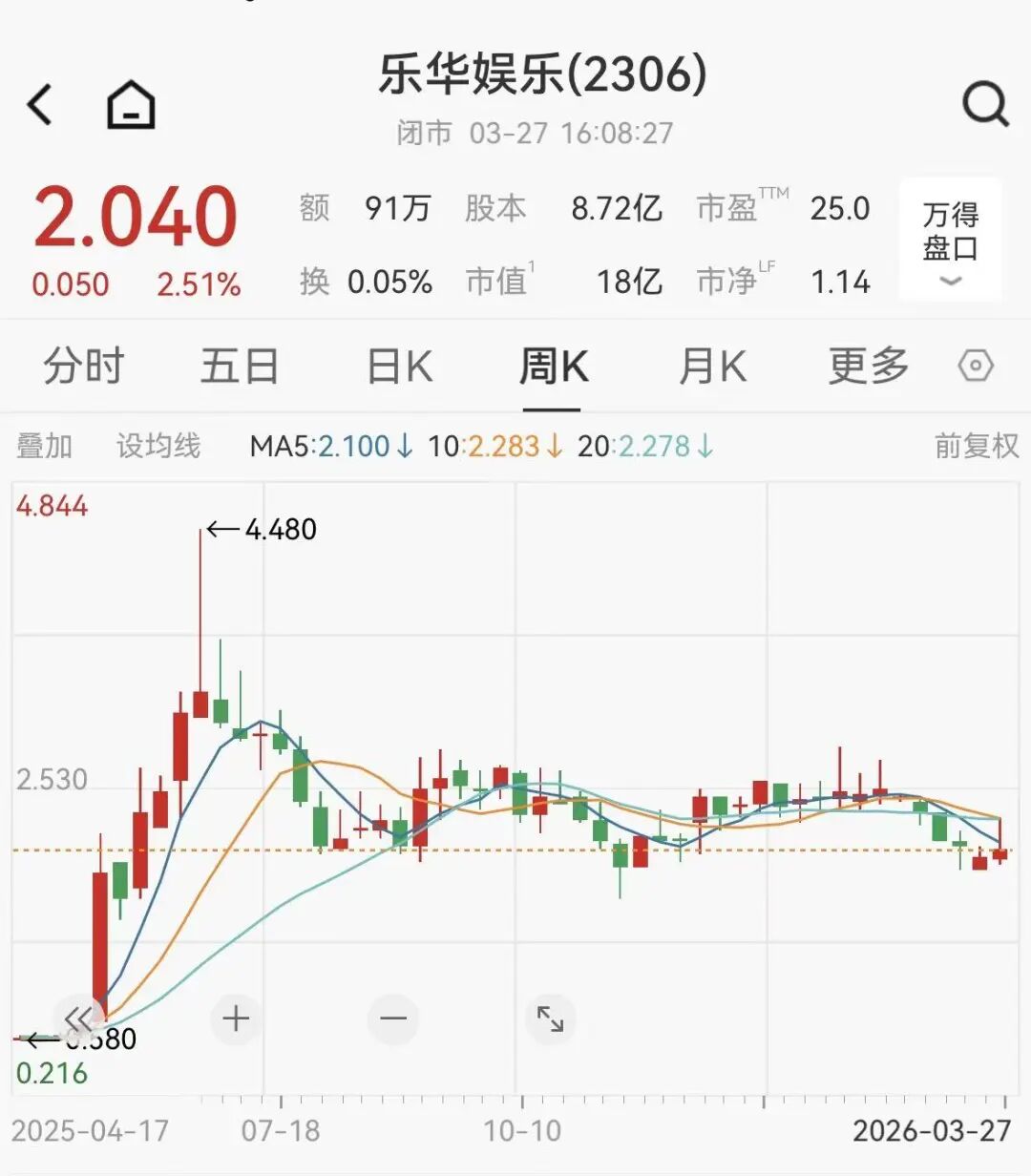 截至3月27日收盘,乐华娱乐涨2.51%,报2.04港元/股。